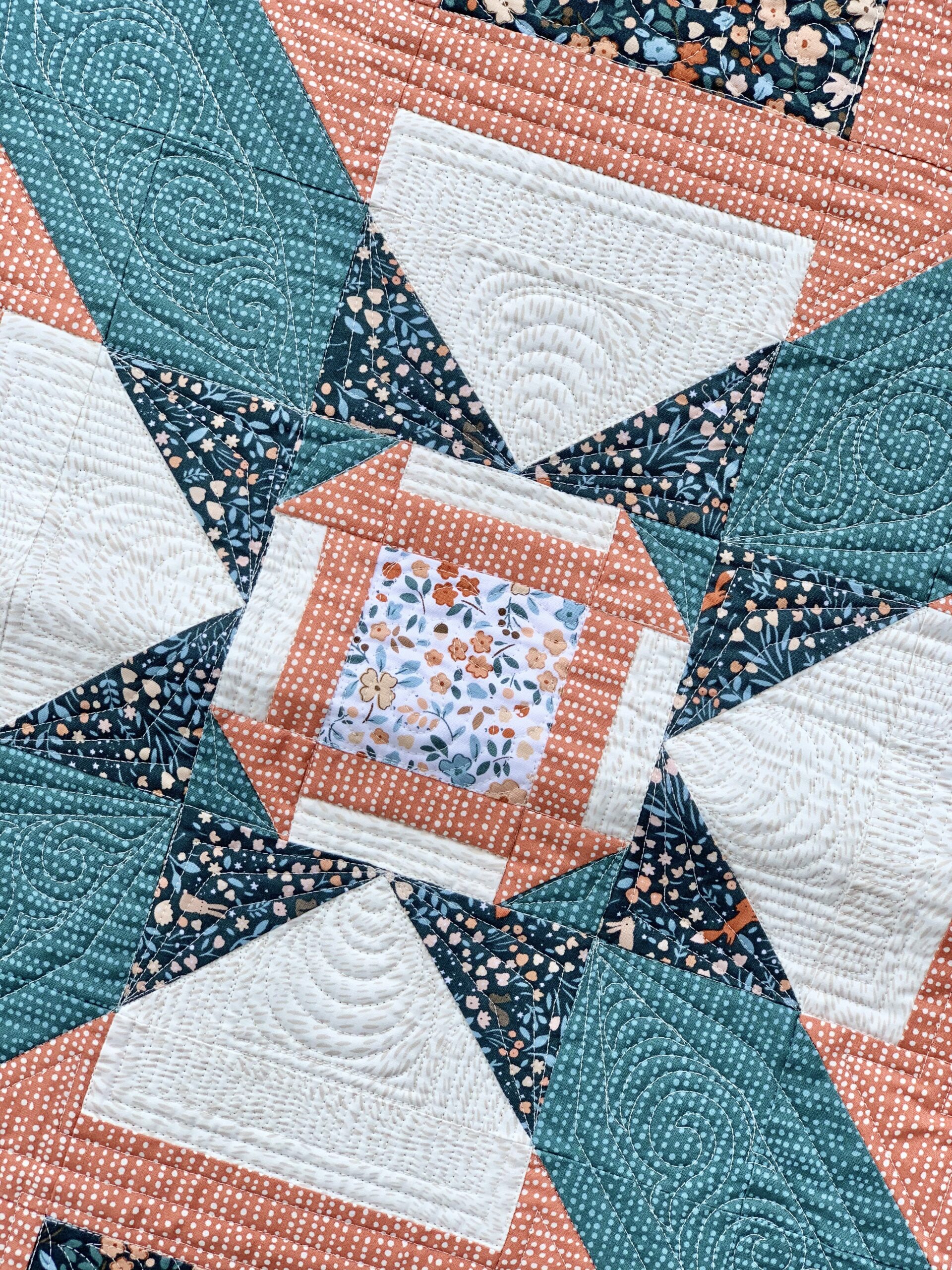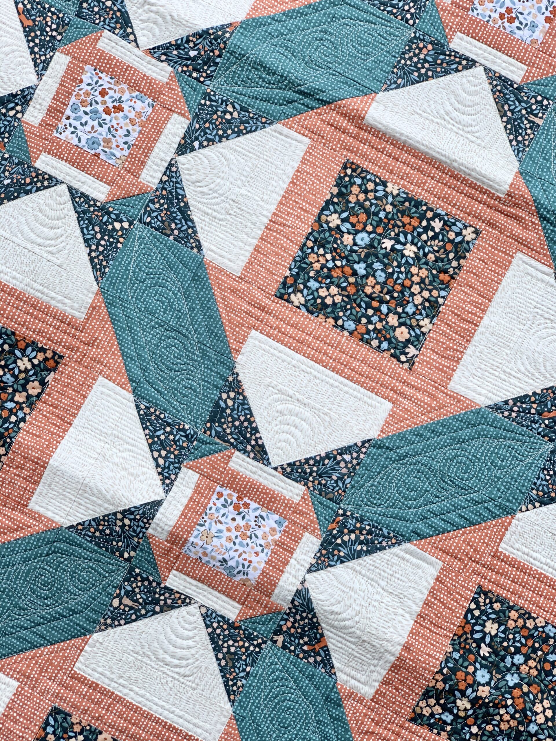 My good friend @Kellyannquilts did the custom quilting for me.  My wallet might hate me for it but I usually prefer to send my quilts off to the longarmer for finishing. Especially anything over 60″.  Kelly can finish a quilt much faster then I can and her quilting always brings out the best in my quilt tops.