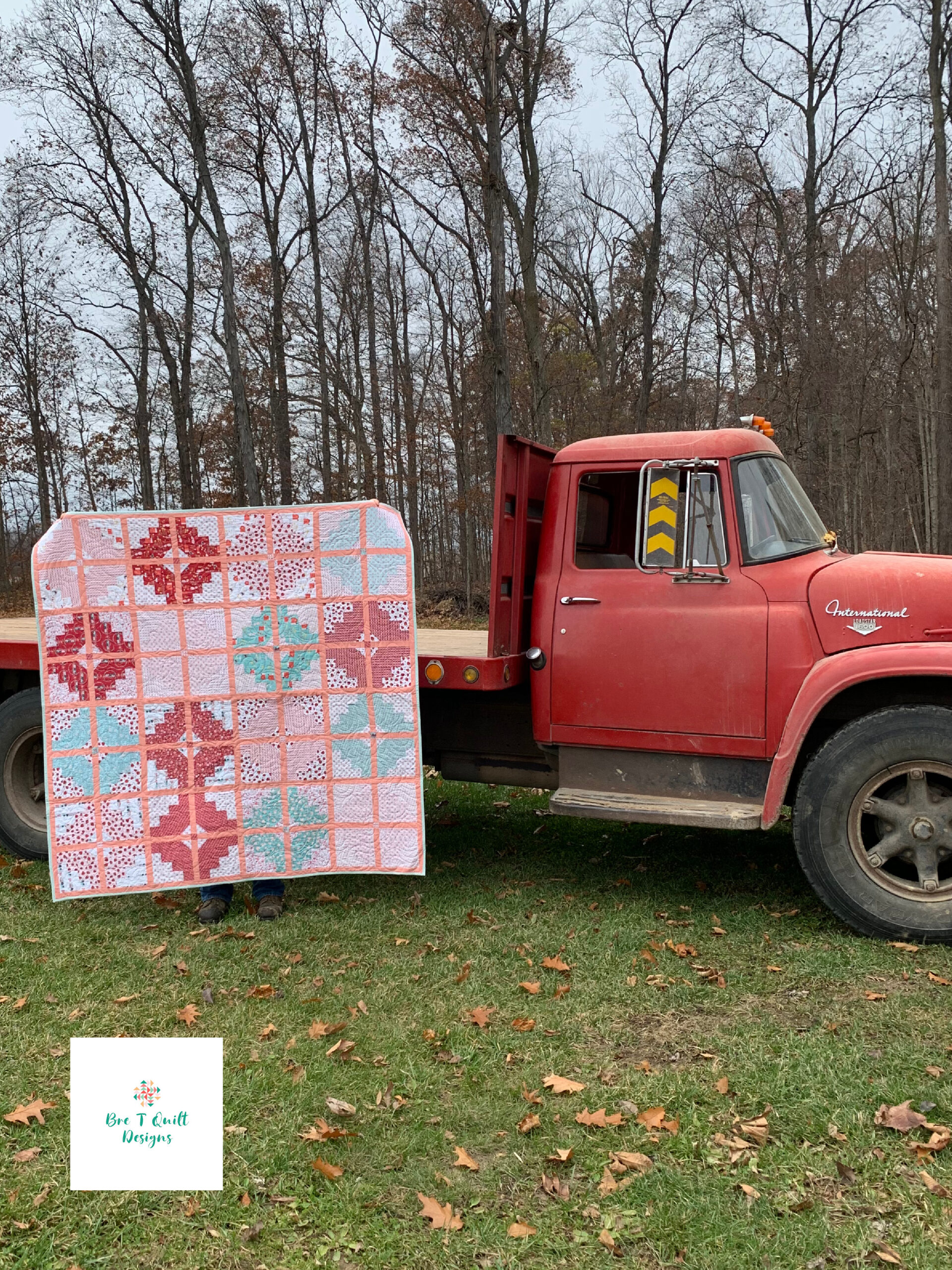 This farm quilt was just begging to be photographed with the old red International truck and our mow full of hay. It just felt right at home here on the farm.