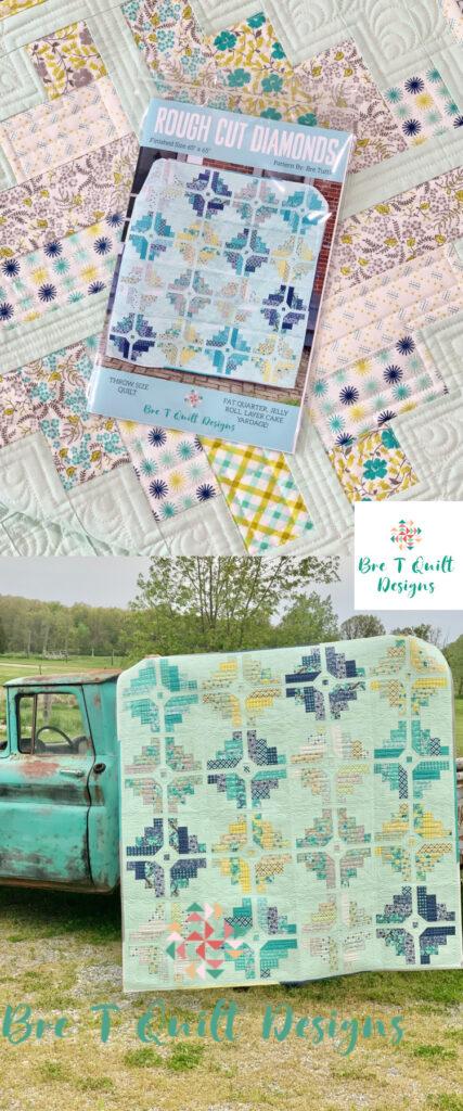I am so excited to share it with you all.  The Rough Cut Diamonds quilt pattern is the perfect jelly roll quilt pattern. It is so versatile If you’ve got precuts you have been wanting to use this is the pattern for you!  This pattern is written for you to use yardage, fat quarters, layer cakes, jelly rolls, and even your scraps!